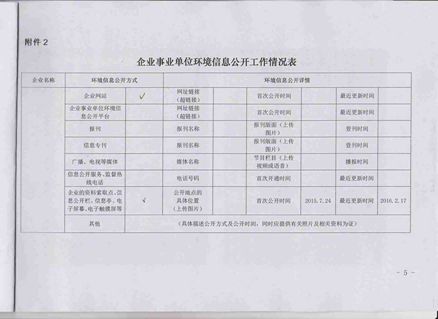 环境信息公开2016年2月